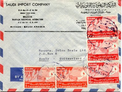 commercial cover from Saudi Arabia includes two of the six stamps of different